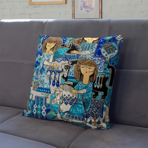 کاورکوسن مخمل لمینت دار با زیپ مخفی ایران خاتون طرح قلم آبی کد ۹
