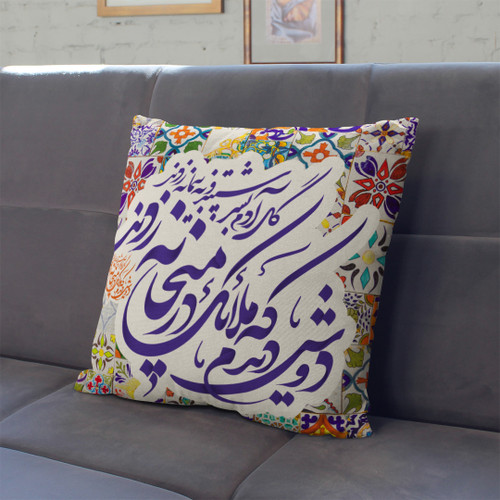 کاورکوسن مخمل لمینت دار با زیپ مخفی ایران خاتون طرح خطاطی کد ۱۹