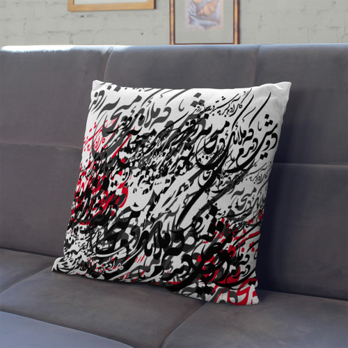کاورکوسن مخمل لمینت دار با زیپ مخفی ایران خاتون طرح خطاطی کد ۱۶