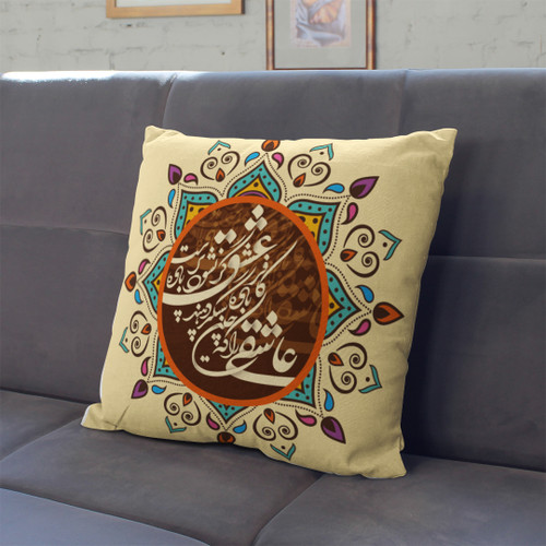 کاورکوسن مخمل لمینت دار با زیپ مخفی ایران خاتون طرح خطاطی کد ۱۷