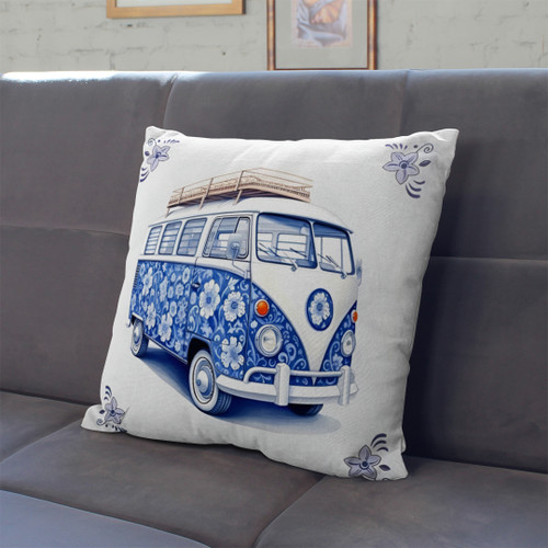 کاورکوسن مخمل لمینت دار با زیپ مخفی ایران خاتون طرح قلم آبی کد ۱۴