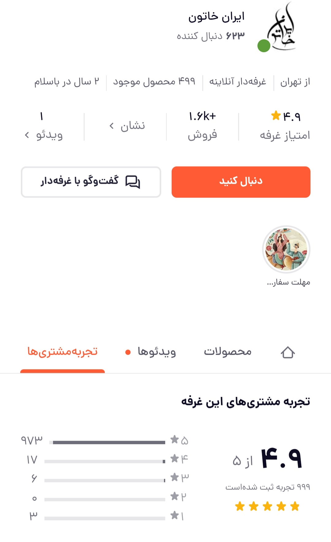 🔹 تا امروز نزدیک به 1000 تجربه واقعی مشتری در مورد محصولات ایران خاتون ثبت شده است.
