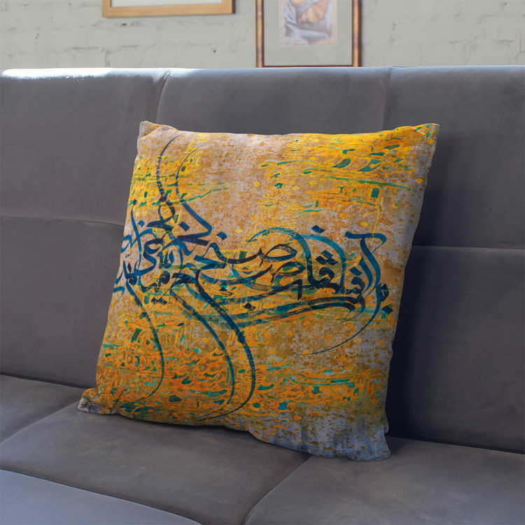 کوسن طرح جذاب خطاطی و فوق العاده زیبا با زیپ مخفی ابعاد ۴۰ در ۴۰ دو رو چاپ شستشو حتی با وایتکس در ضمن میتونید طرح دلخواهتون رو بدین براتون تولید کنیم