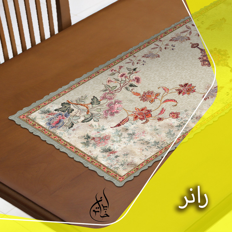 رانر مخمل ایران خاتون در ابعاد ۱۳۰ در ۴۰ و ۱۰۰ در ۴۰ طرح سنتی پارچه مخمل پورشه لمینت دار درجه یک و بسیار نرم و لطیف هست.
