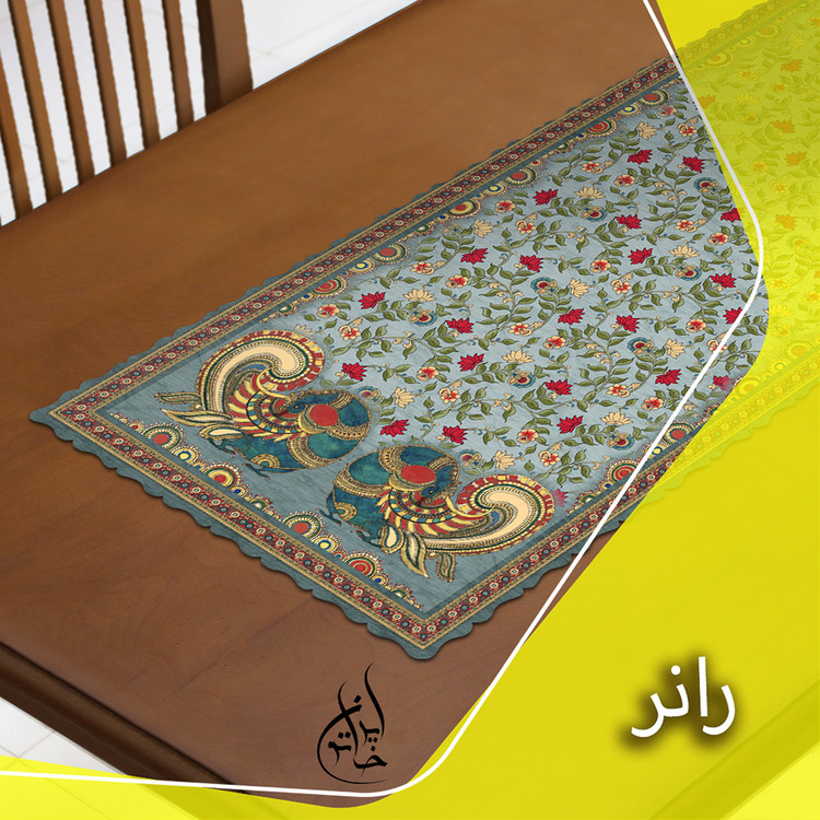 رانر مخمل ایران خاتون در ابعاد ۱۳۰ در ۴۰ و ۱۰۰ در ۴۰ طرح سنتی پارچه مخمل پورشه لمینت دار درجه یک و بسیار نرم و لطیف هست.