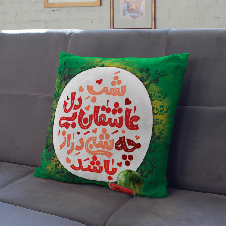 کاور کوسن مخمل ایران خاتون طرح یلدا پارچه مخمل پورشه لمینت دار درجه یک و بسیار نرم و لطیف هست.