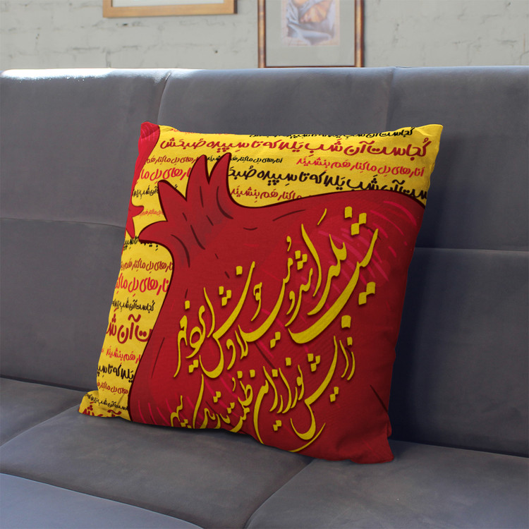 کاور کوسن مخمل ایران خاتون طرح یلدا پارچه مخمل پورشه لمینت دار درجه یک و بسیار نرم و لطیف هست.