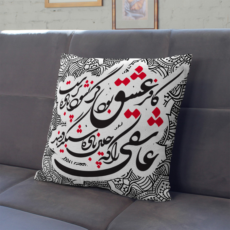 کوسن طرح جذاب خطاطی و فوق العاده زیبا با زیپ مخفی ابعاد ۴۰ در ۴۰ دو رو چاپ شستشو حتی با وایتکس در ضمن میتونید طرح دلخواهتون رو بدین براتون تولید کنیم
