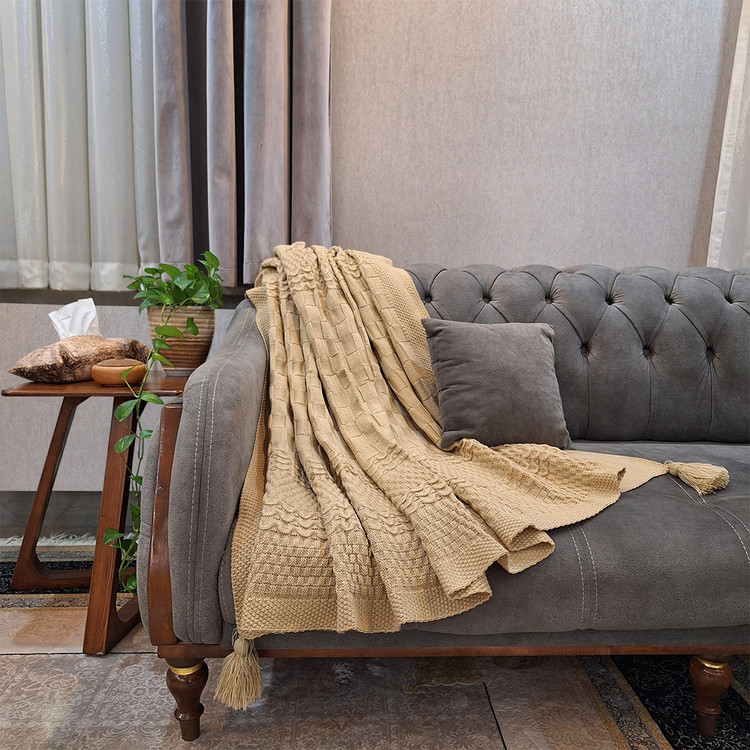 شال مبل بافتنی ایران خاتون پارچه اکریلیک ترک درجه یک و بسیار نرم و لطیف هست.