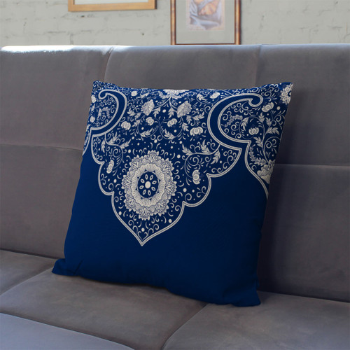 کاورکوسن مخمل لمینت دار با زیپ مخفی ایران خاتون طرح قلم آبی کد ۸